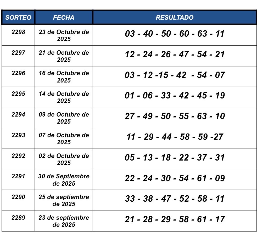 Resultados CONSULTAR MI BOLETO Resultado sorteo #2298 Jueves 23 de Octubre de 2025 Histórico de resultados CONSULTAR OTRO SORTEO La Gran Balota Millonaria